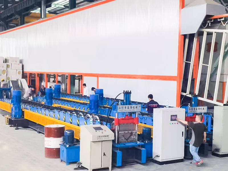 定尺切割系统:当连续型材成型后达到预设长度时,进行高精度切割(常用方式包括液压飞锯、气动冲孔、伺服跟踪锯切等)。